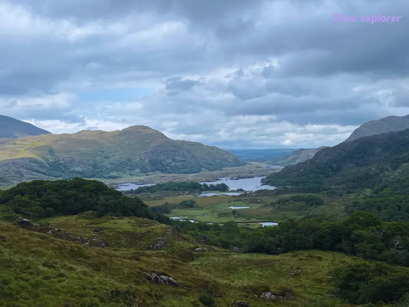 Siguiendo la ruta, la siguiente parada fue Ladies View, uno de los miradores más impresionantes del Ring of Kerry. Desde allí se pueden ver los lagos de Killarney rodeados de montañas. Es un lugar donde conviene no detenerse demasiado tiempo porque el espacio para aparcar es reducido, pero la vista compensa la parada.