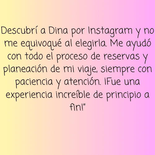 Al reservar tu viaje conmigo tu itinerario queda completamente gratis. Si solo te interesa la planeación del itinerario personalizado, pregunta por mis paquetes.